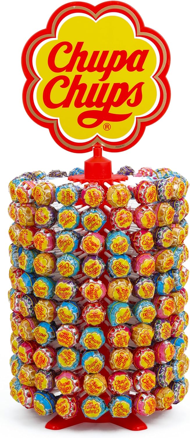カラフルなフレーバーが楽しめるチュッパチャプスの大容量セット。ホイール型ディスプレイ付きで、そのまま置いて楽しめるのが特長です。200本入りでイベントやパーティー、配布用にも使いやすく、みんなでシェアしやすい仕様。見た目のインパクトもあり、場を盛り上げるアイテムとしても活用しやすい商品です。