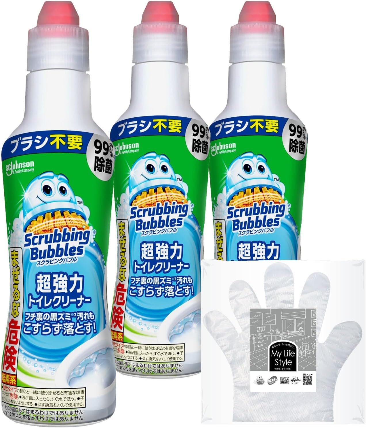-37%【¥503 (¥168/本)】◤スクラビングバブル 超強力トイレクリーナー 400g×3本 手袋付き