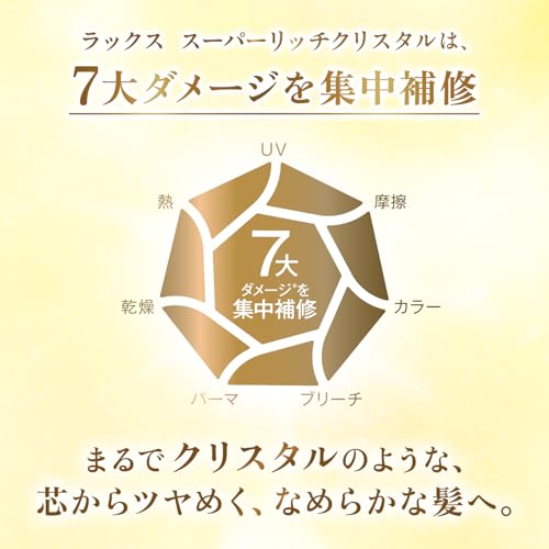 LUXのスーパーリッチクリスタルシリーズは、ミモザの華やかな香りが広がるシャンプー&コンディショナーのセット。髪をやさしく洗い上げながら、指通りのよい仕上がりをサポートします。ポンプタイプで使いやすく、毎日のヘアケアに取り入れやすい仕様。450gずつのセットでバランスよく使える、香りと仕上がりを楽しめるヘアケアアイテムです。