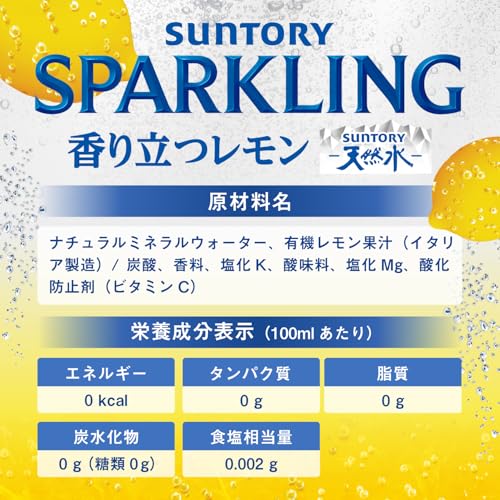 清冽なサントリー天然水と朝摘み有機レモンを使用。搾りたてのようなレモンのおいしさの、キリっと爽快な炭酸水サントリー天然水スパークリングレモンです。分別が便利なラベルレスボトルです。清冽なサントリー天然水と、こだわりの果実シチリア産朝摘み有機レモンを使用。