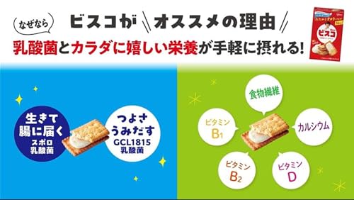 たたかうチカラになる!つよさうみだすGCL1815乳酸菌と生きて腸に届くスポロ乳酸菌入りのサクッとしたミルククリームサンドビスケットです。ミルクのやさしい甘みを家族みんなで楽しんでいただけます。カルシウム、ビタミンD、ビタミンB1、ビタミンB2もたっぷり入っています。