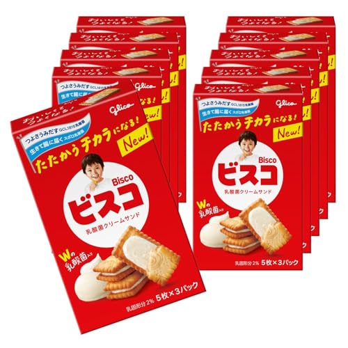 -39%【1,051円 (105円/個)】ビスコ bisco glico 乳酸菌クリームサンド ビスケット ミルククリーム 15枚×10個 [PR]