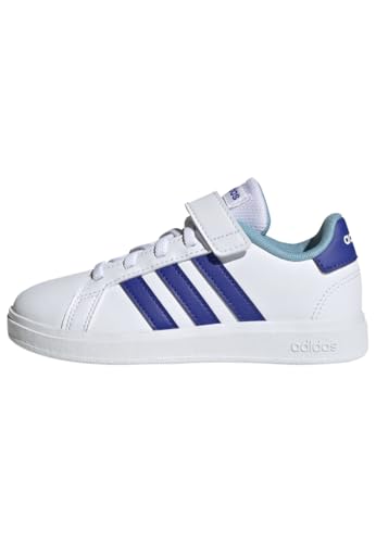 アディダスのキッズ用スニーカー「グランドコート」は、人気の3ストライプデザインで、どんなコーデにも合わせやすい一足。軽量でクッション性に優れ、普段使いや通学にも最適。履きやすい設計で、元気に遊ぶお子様の足を快適にサポートします。