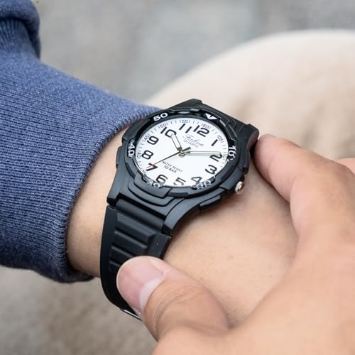 シンプルなアナログ表示と10気圧防水機能を備えたボーイズ腕時計。軽量で着け心地がよく、ブラックのデザインがどんなコーディネートにもマッチします。普段使いはもちろん、アウトドアやスポーツにもおすすめ。安心の日本ブランドで、初めての腕時計にもぴったりです。