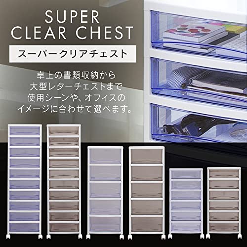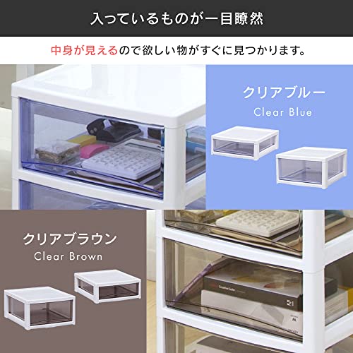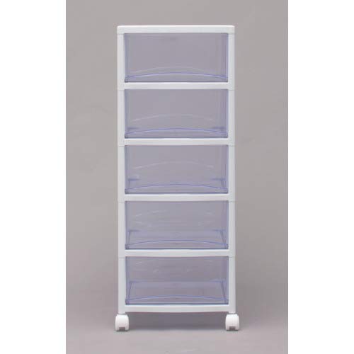 ホワイトとクリアブルーの爽やかなカラーリングで、収納物がひと目で分かる透明引き出しを採用。スリム設計の5段(深型)でちょっとしたスペースにも置きやすく、リビングやクローゼットの整理整頓に最適です。軽量で移動もラクラク。
