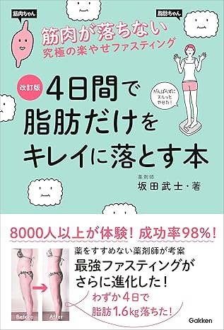 坂田武士氏による短期集中型ファスティングメソッドを紹介する改訂版。4日間で脂肪のみを効率的に落とし、筋肉量をキープする食事・運動・生活習慣のポイントを解説。無理なく続けられるラクやせ法を、科学的根拠と実践的アドバイスでわかりやすくまとめています。健康的に引き締めたい方に最適な一冊。