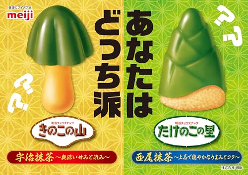 宇治抹茶を使った「きのこの山」と、西尾抹茶を使った「たけのこの里」を4袋ずつアソートした、食べ比べ楽しめるスナックセットです。香り高い抹茶の渋みとスナックの食感が絶妙にマッチ。小分けでシェアにも便利なので、ご家庭はもちろんオフィスやイベントの手土産にもぴったりです。2024年4月に全国発売され、抹茶好きに大人気のアイテムです。