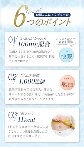 GABA100mg配合で睡眠の質向上やストレス緩和をサポートする機能性表示食品。さらに乳酸菌入りで健康維持にも役立ちます。低カロリー&常温保存可能で手軽に続けやすく、家族4人で約1ヶ月分楽しめる大容量ファミリーパック。夜のリラックスタイムに取り入れやすく、美味しく習慣化できるこんにゃくゼリーです。